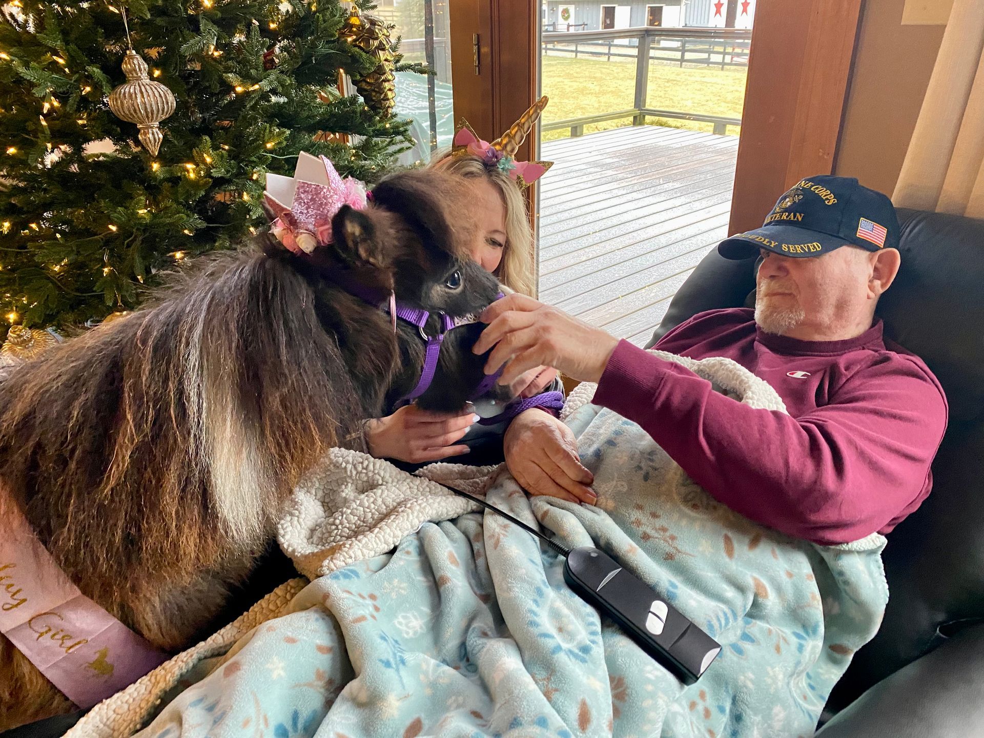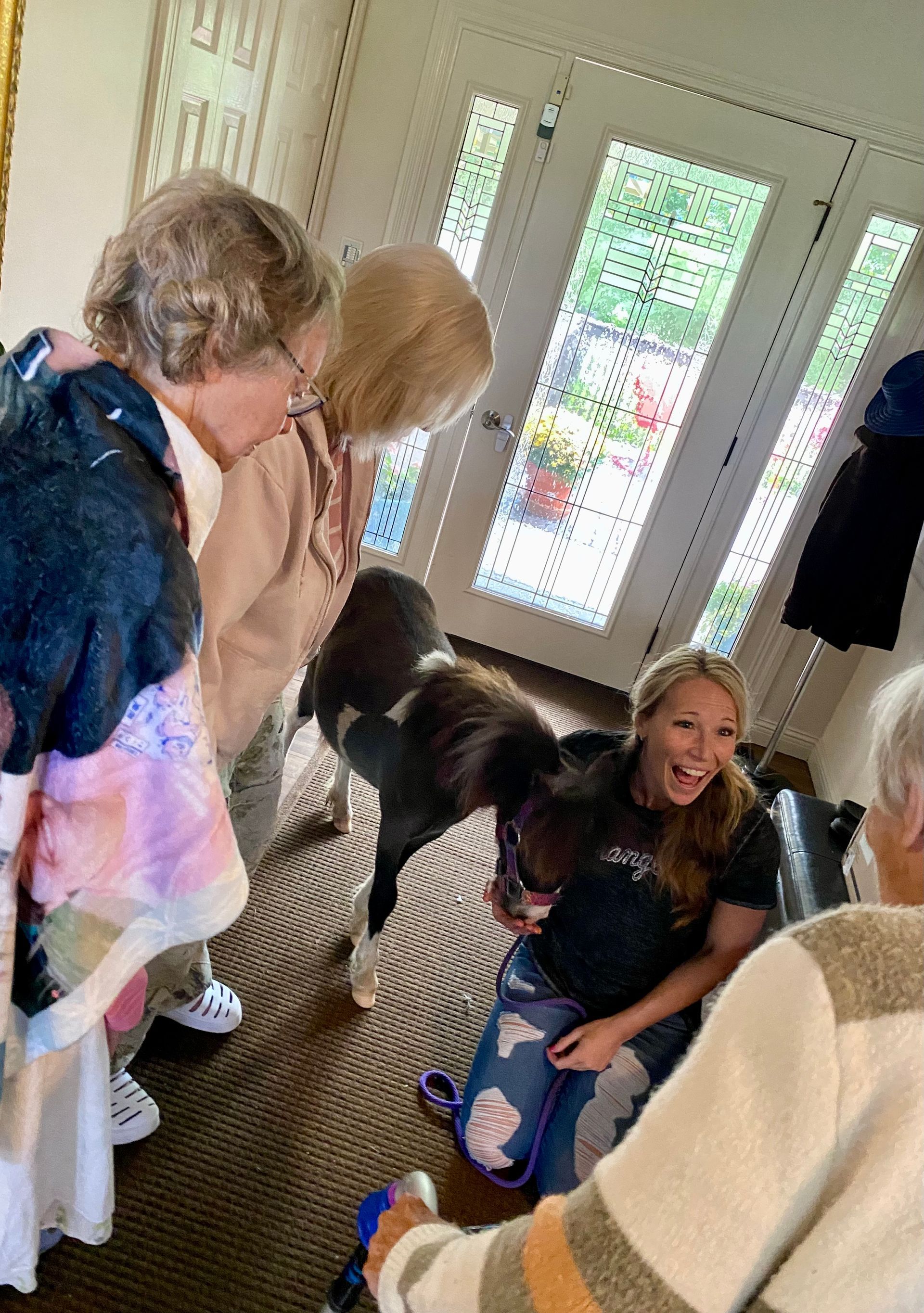 Our miniature horses have been on indoor visits to senior living facilities, rehabilitation centers, memory care, veteran centers, grief therapy groups, hospitals, schools, and even private home visits.